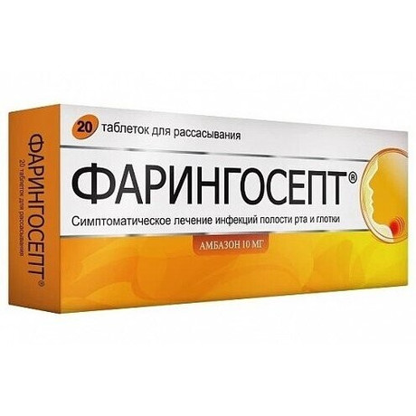 1 табл. содержит амбазона моногидрат 10 мг, вспомогательные вещества: какао; сахар (сахароза); лактозы моногидрат; гуммиарабик; поливидон К30; магния стеарат; ароматизатор лимонный.