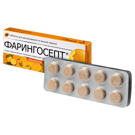 | Безрецептурный препарат | Фарингосепт® | Таблетки для рассасывания со вкусом лимона 10 мг: 10 или 20 шт. рег. №: П N015365/01 от 17.05.10 *- Бессрочно* Дата переоформления: 28.04.16 |