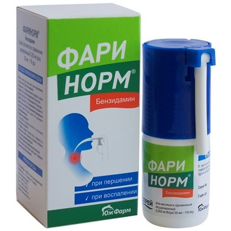 | Фаринорм® Бензидамин | Спрей д/местн. прим. дозированный 0.255 мг/доза: 30 мл или 40 мл фл. рег. №: ЛП-006257 от 15.06.20 *- Действующее* |
