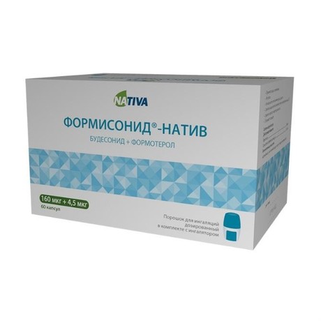 Формисонид®-натив - комбинированный препарат, содержит формотерол и будесонид, которые имеют разные механизмы действия и проявляют аддитивный эффект в отношении выраженности симптомов бронхиальной астмы. Особые свойства будесонида и формотерола дают возможность использовать их комбинацию одновременно в качестве поддерживающей терапии и для купирования приступов, или как поддерживающую терапию бронхиальной астмы.