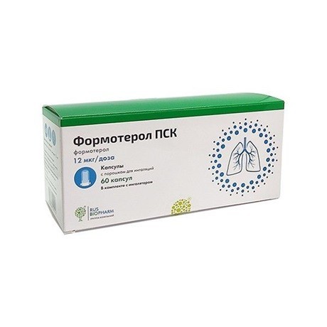 | Формотерол ПСК | Капс. с порошком д/ингал. 12 мкг/доза: 30 или 60 шт. в компл. с устройством д/ингаляций или без него рег. №: ЛП-005509 от 13.05.19 *- Действующее* Дата переоформления: 01.11.22 |