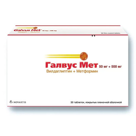 | Галвус Мет® | Таб., покр. пленочной оболочкой, 50 мг+500 мг: 6, 10, 18, 30, 36, 50, 60, 72, 108, 120, 180, 216 или 360 шт. рег. №: ЛСР-001749/09 от 10.03.09 *- Бессрочно* Дата перерегистрации: 20.09.18 |