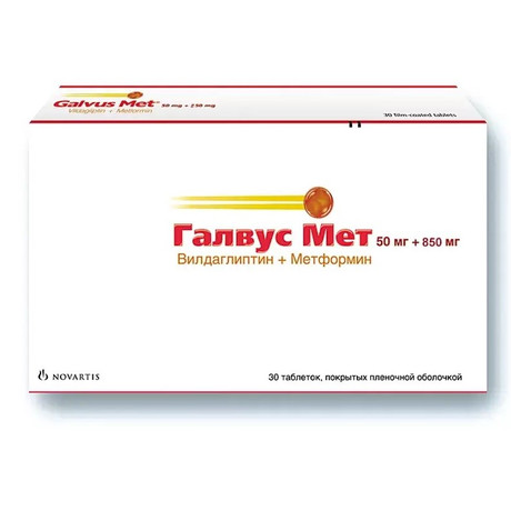 | Галвус Мет® | Таб., покр. пленочной оболочкой, 50 мг+850 мг: 6, 10, 18, 30, 36, 50, 60, 72, 108, 120, 180, 216 или 360 шт. рег. №: ЛСР-001749/09 от 10.03.09 *- Бессрочно* Дата перерегистрации: 20.09.18 |