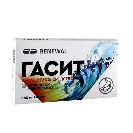 | Гасит | Таб. жевательные 680 мг+80 мг: 8, 16, 24, 32, 40 или 48 шт. рег. №: ЛП-(001619)-(РГ-RU) от 28.12.22 *- Действующее* Предыдущий рег. №: ЛП-006807 |