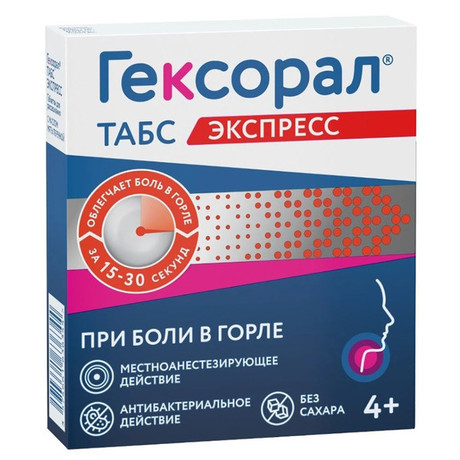 | Гексорал® табс экспресс | Таб. д/рассасывания 5 мг+1.5 мг: 16 шт. рег. №: ЛСР-002626/07 от 14.03.08 *- Бессрочно* Дата перерегистрации: 26.01.22 |