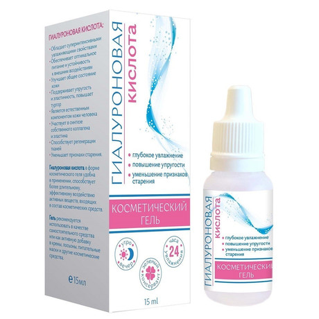 ГИАЛУРОНОВАЯ КИСЛОТА ГЕЛЬ КОСМЕТИЧЕСКИЙ - в форме косметического геля удобна в применении, способствует более длительному, эффективному воздействию активных веществ, входящих в состав косметических средств. Внешний вид и свойства: Однородная бесцветная гелеобразная масса без посторонних включений Гиалуроновая кислота является естественным компонентом кожи человека, где она играет важную роль в поддержании нормального водного баланса. В форме кислоты она нестабильна, ее получают и очищают как натриевую соль - гиалуронат натрия. Оказывает иммуномодулирующее действие, опосредовано участвует в синтезе коллагена и эластина, обеспечивает регенерацию тканей, поддерживает тургор, обладает большой влагоудерживающей способностью, что обеспечивает коже упругость и устойчивость к внешнему воздействию. Полимерная сеть гиалуроната натрия на поверхности кожи позволяет активным веществам, входящим в состав косметических средств, дольше на ней задерживаться, что повышает вероятность пролонгированного воздействия.