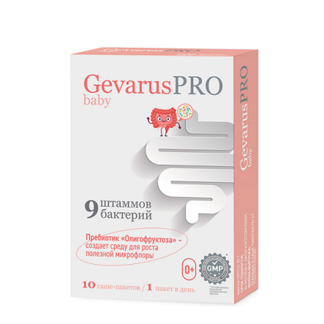 Пробиотики, входящие в состав препарата, (Lactobacillus acidophilus LA-G80, Lactobacillus plantarum Lp-G18, Lactobacillus rhamnosus Lr-G14, Lactobacillus casei LC-G11, Lactobacillus paracasei LPc-G110, Lactobacillus salivarius LS-G60, Bifidobacterium bifidum BB-G90, Bifidobacterium longum ssp longum BL-G301, Streptococcus thermophilics ST-G30) позволяют сбалансированно поддерживать и укреплять общую микрофлору кишечника. Наличие в составе L. Salivarius и L. Plantarum – локация в ротовой полости ребенка, позволяющая усилить т.н. социальный иммунитет, подавляя патогенную флору уже в ротовой полости, а также повысить сигнальную функцию и более ранний защитный ответ организма о состоявшемся «вторжении» патогенов. Наличие St.Thermophilus – повышение синтеза B9 (фолиевой кислоты), непосредственно влияющей на развитие нервной системы ребенка и воспроизводства эритроцитов (профилактика анемии у детей). Поликомпонетный сбалансированный пробиотик с пребиотическим компонентом (+олигофруктоза) для детей.