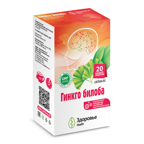 «Гинкго билоба» - Биологически активная добавка к пище Внешний вид и свойства: Смесь растительного сырья зеленоватого цвета с беловатыми, желтоватыми, сероватыми, светло-, тёмно-коричневыми вкраплениями. Со вкусом и запахом свойственными данному растительному сырью. Целебное действие - Тонизирующее средство. Среди биологически активных добавок на основе листьев древнейшего китайского дерева гинкго, направленных на нормализацию и улучшение мозгового кровообращения, можно выделить БАД «Гинкго билоба» от фирмы «Здоровье». Измельченные листья гинкго билобы, входящие в состав фиточая, активным образом воздействуют на сосуды головного мозга, что приводит к улучшению текучести крови (ее реологических свойств), к нормализации мозгового кровоснабжения и к заметному повышению умственной работоспособности. Кроме того, лимонная трава и зеленый байховый чай, входящие в состав продукта «Гинкго билоба», прекрасно дополняют изысканный вкус фиточая цитрусовым оттенком, придавая ему прекрасный аромат (благодаря наличию в чае лимонной травы), а также концентрируют внимание и оказывают тонизирующее воздействие (благодаря зеленому чаю) на весь организм. Более подробно о полезных свойствах компонентов, входящих в состав фиточая «Гинкго билоба» от фирмы «Здоровье», расскажем ниже. • Листья гинкго билобы. В составе листьев динозаврового дерева были найдены уникальные вещества – гинколиды, обладающие мощной способностью оказывать благоприятное действие на стенки кровеносных сосудов головного мозга человека, повышая их эластичность и расширяя их. Также в составе листьев гинкго билобы были найдены флавоногликозиды и проантоцианидины. Эти вещества оказывают кровеносным сосудам мозга активную защиту против проникновения в них свободных радикалов – провокаторов онкологических заболеваний. Также листья гинкго билобы богаты следующими макро- и микроэлементами: кальцием, калием, магнием, селеном, фосфором, железом, титаном, медью. • Трава лимонная (или цимбопогон). Это довольно полезное многолетнее травянистое растение, обладающее целым рядом лечебных свойств. Длинные, тонкие, собранные в пучки листья цимбопогона источают приятный цитрусовый аромат благодаря содержанию в них эфирного лемонграссового масла. Их используют в свежем и высушенном виде для ароматизации горячих и холодных напитков, придания блюдам приятного аромата и свежего вкуса. Полезные свойства лимонной травы обусловлены наличием в ее химическом составе природного антиоксиданта – витамина А. Также в составе травы были найдены витамины В и С, жирные кислоты, никотиновая кислота и различные микроэлементы. Как правило, лимонную траву используют для очистки организма от шлаков и токсинов. Кроме того, цимбопогон – отличный антидепрессант. Ее свежий лимонный аромат способствует снятию усталости, тонизирует организм, концентрирует внимание. • Чай зеленый байховый. Является не только популярным пищевым продуктом, но и лечебным стимулирующим средством, оказывающим тонизирующее воздействие на организм. По химическому составу, физиологическому и фармакологическому воздействию продукт является наиболее полезным и ценным, нежели классический черный чай. Катехин в составе зеленого байхового чая нейтрализует вещества, провоцирующие мутацию клеток, тем самым защищ
