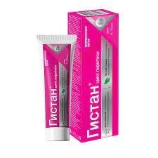 Крем Гистан - парафармацевтическое наружное средство, применяемое при аллергических высыпаниях на коже лица, рук и тела: при кожном зуде, крапивнице, везикулезных (пузырьковых) аллергических высыпаниях. Крем Гистан пиготовлен на основе гипоаллергенной базы с добавлением природного антигистаминного вещества Бетулина, получаемого из тонкой коры березы. Не содержит гормонов. Основной компонент гипоаллергенной базы - диметикон. Диметикон - это силиконовый полиглюкозид, который создает на пораженных участках кожи пленку, свободно пропускающую к коже кислород, но не допускающую влагу и аллергены. В состав крема входят также экстракты "противоаллергических" трав и эфирное масло ландыша. Молекулярная структура эфирного масла ландыша способствует его легкому проникновению в кожу, в результате чего происходит стимуляция и улучшение обменных процессов, кровообращения. Масло ландыша и экстпакты трав способствуют профилактике инфекционных осложнений при аллергических поражениях кожи за счет своих антисептических свойств.