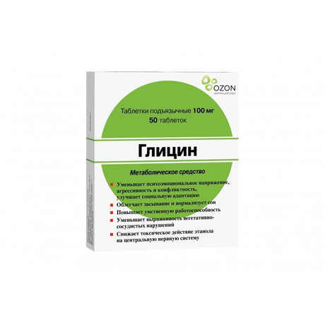 Глицин является регулятором обмена веществ, нормализует и активирует процессы защитного торможения в центральной нервной системе, уменьшает психоэмоциональное напряжение, повышает умственную работоспособность.
