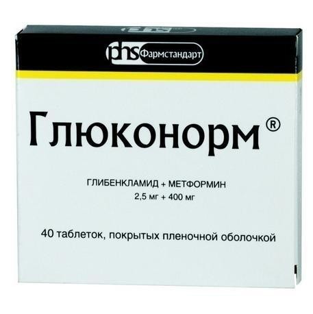 Глюконорм представляет собой фиксированную комбинацию двух пероральных гипогликемических средств различных фармакологических групп: метформина и глибенкламида.
