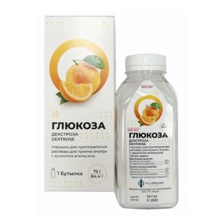 | Глюкоза | Порошок для приготовления раствора для приема внутрь 75 г: 82.5 г банки рег. №: ЛП-007234 от 28.07.21 *- Действующее* |