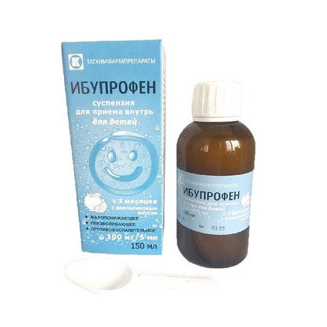 | Ибупрофен | Сусп. д/приема внутрь для детей 100 мг/5 мл: фл. 100 мл, 150 мл или 200 мл в компл. с мерной ложкой или стаканчиком рег. №: ЛП-004270 от 28.04.17 *- Действующее* |