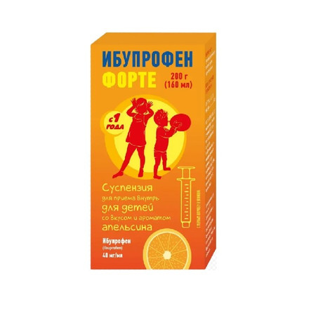 | Ибупрофен Форте | Сусп. д/приема внутрь для детей [со вкусом и ароматом апельсина] 40 мг/1 мл: фл. 100 г или 200 г в компл. с мерным шприцем рег. №: ЛП-(000401)-(РГ-RU) от 27.10.21 *- Действующее* |