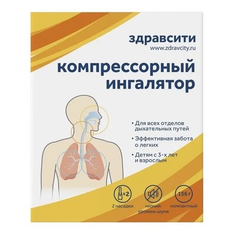 Ингалятор компрессорный с принадлежностями Здравсити: Показания Медицинский компрессорный ингалятор. Ингалятор предназначен для лечения заболеваний верхних и нижних дыхательных путей, применяется при кашле, затрудненном дыхании, осиплости голоса, ринорее, болях в груди, обусловленных бронхитом, затрудненном отхождении мокроты. При помощи ингаляций с лекарственными веществами, рекомендованными врачом, происходит доставка в дыхательные пути терапевтической дозы препарата в аэрозольной форме за короткий период. Непрерывная подача аэрозоля позволяет в течение нескольких минут создать высокую концентрацию лекарственного вещества в верхних, нижних дыхательных путях и легких с низкой вероятностью развития побочных явлений.