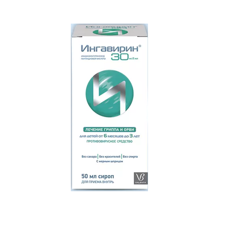 | Ингавирин® | Сироп 30 мг/5 мл: фл. 50 мл в компл. с мерн. шприцем с рисками 2.5 мл/3.5 мл/4.5 мл/5 мл (д/детей от 6 мес. до 3 лет) рег. №: ЛП-006482 от 29.09.20 *- Действующее* | |