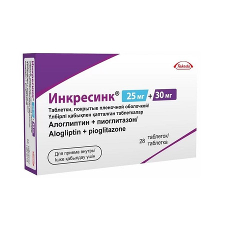 Препарат Инкресинк® представляет собой комбинацию двух гипогликемических средств с взаимодополняющими и разными механизмами действия, предназначенную для улучшения контроля гликемии у пациентов с сахарным диабетом 2 типа (СД2): алоглиптина, ингибитора фермента дипептидилпептидазы-4 (ДПП-4) и пиоглитазона, представителя класса тиазолидиндионов. Результаты исследований на животных при лечении сахарного диабета указывали на то, что комбинированное применение алоглиптина и пиоглитазона приводило к аддитивному и синергитическому улучшению гликемического контроля, увеличению содержания инсулина в поджелудочной железе и нормализации распределения бета-клеток поджелудочной железы.