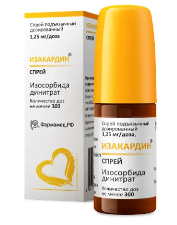 | Изакардин® | Спрей подъязычный дозированный 1.25 мг/1 доза: фл. 15 мл (300 доз) в компл. с дозатором-распылителем рег. №: ЛП-000348 от 22.02.11 *- Бессрочно* Дата переоформления: 26.12.22 |