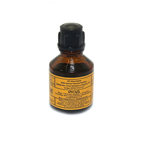 | Йода раствор спиртовой 5% | Р-р д/наружн. прим. спиртовой 5%: фл. 10 мл, 15 мл или 25 мл рег. №: 70/529/34 от 04.08.70 *- Отмена гос. регистрации* |