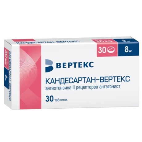 | Кандесартан-Вертекс | Таб. 8 мг: 14, 28, 30, 56 или 60 шт. рег. №: ЛП-003434 от 02.02.16 *- Действующее* |