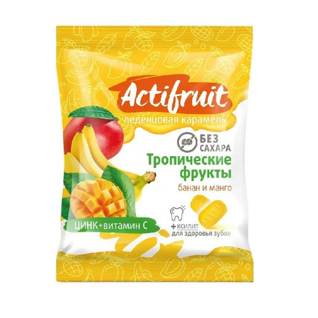 Инструкция по применению Актифрут леденцовая карамель без сахара с цинком и витамином с со вкусом банана и манго 60г
