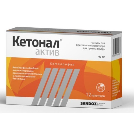 | Кетонал® Актив | Гранулы д/пригот. р-ра д/приема внутрь 40 мг/1 пак.: пак. 1 г 12, 15, 18 или 30 шт. рег. №: ЛП-005697 от 06.08.19 *- Действующее* |
