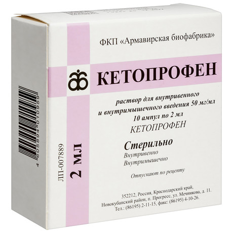 | Кетопрофен | Р-р д/в/в и в/м введения 50 мг/мл: амп. 2 мл 5 или 10 шт. рег. №: ЛП-007889 от 15.02.22 *- Действующее* |