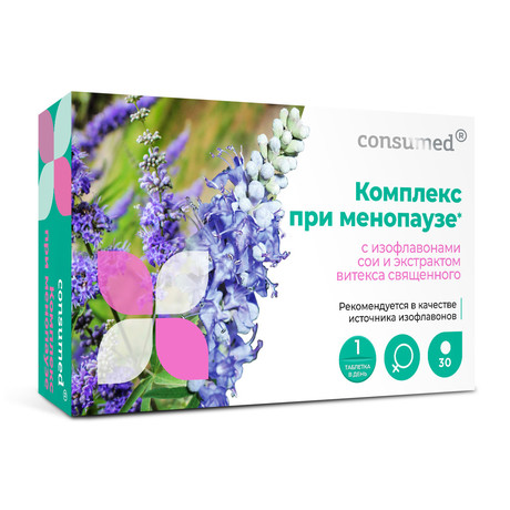 «Комплекс изофлавонов сои и витекса священного» предназначен для женщин в период менопаузы. Кроме полезных веществ, содержащихся в семенах сои и плодах витекса, в состав комплекса включены наиболее важные витамины и минералы: кальций, магний, витамины группы В, D3, К1 и биотин.