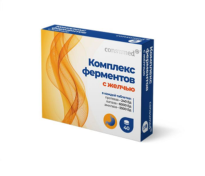 Содержание в 1 таблетке: • Панкреатин — 192 мг • Гемицеллюлаза — 50 мг • Желчь — 25 мг
