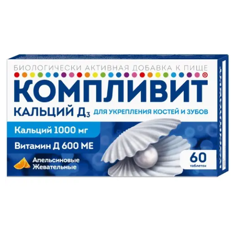 КОМПЛИВИТ КАЛЬЦИЙ Д3 /АПЕЛЬСИН/ - Биологически активная добавка (БАД) к пище, активность которой определяется свойствами входящих в состав компонентов (согласно научным данным):