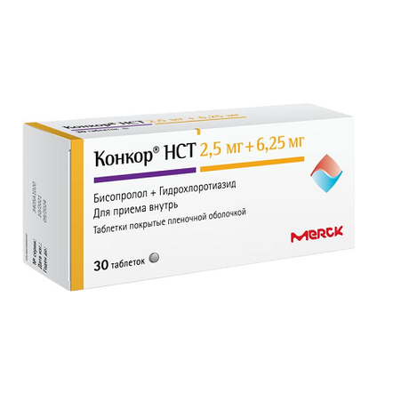 | Препарат отпускается по рецепту | Конкор® НСТ | Таблетки, покрытые пленочной оболочкой, 2.5 мг+6.25 мг: 30 шт. рег. №: ЛС-001912 от 29.09.11 *- Бессрочно* Дата переоформления: 12.04.23 |