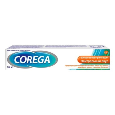 Крем Корега Нейтральный 70г,Крем Корега Нейтральный 70г №1 в рекомендациях стоматологов (1) Предотвращает попадание частичек пищи под базис зубного протеза (2) Фиксирует зубной протез в течении всего дня(до 12 часов) (3) Не содержит ароматизаторов – не изменяет вкус пищи 1.В рекомендации врачей стоматологов-ортопедов в категории средств по уходу за зубными протезами 2. Munoz C et al. J Prosthodont 2012;21:123-129 3. Исследование компании GSK.Фернандез П. Оценка силы окклюзии крема для фиксации зубных протезов, номер PLC BF 2009-08:2009