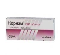 При одновременном применении Корнама и бета-адреноблокаторов, диуретиков, блокаторов кальциевых каналов, ингибиторов АПФ антигипертензивный эффект может усиливаться. Требуется особая осторожность при одновременном назначении теразозина и антигипертензивных препаратов центрального действия.