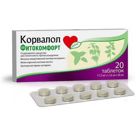 | Корвалол Фитокомфорт | Таб.: 20, 30 или 50 шт. рег. №: ЛП-007535 от 22.10.21 *- Действующее* Дата перерегистрации: 15.08.22 |