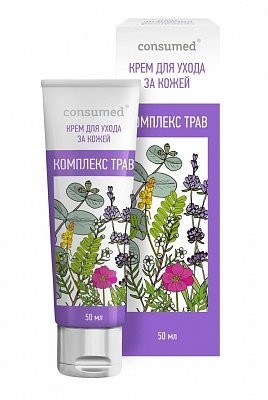 Комплексное действие компонентов крема оказывает защитное действие на кожу, способствует уменьшению раздражений, увлажняет ее и успокаивает. Благодаря богатому составу крем питает кожу полезными веществами, предотвращает появление сухости и ощущения стянутости кожи. Предлагаем купить Крем для ухода за кожей Комплекс трав розовый Consumed, 50мл с помощью онлайн-заявки — закажите препарат в ближайшую аптеку из числа наших партнеров города Анапа, чтобы выкупить его в рабочее время аптеки.