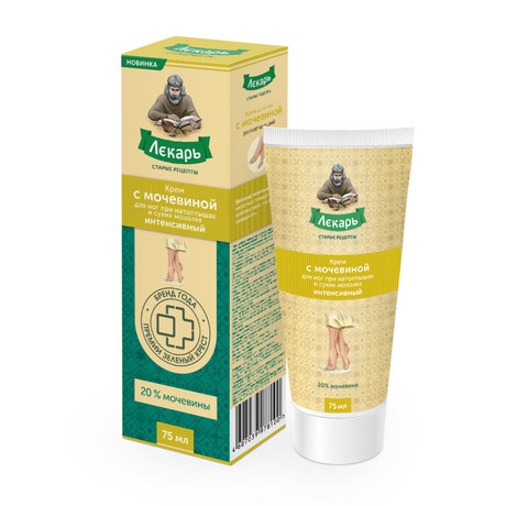 ЛЕКАРЬ КРЕМ ДЛЯ НОГ С МОЧЕВИНОЙ ПРИ НАТОПТЫШАХ И СУХИХ МОЗОЛЯХ ИНТЕНСИВНЫЙ - отшелушивающее и увлажняющее действие компонентов крема «Лекарь интенсивный» делает кожу стоп более мягкой и заметно более гладкой. Внешний вид и свойства: Однородная масса, не содержащая посторонних примесей. Запах цветочный. Цвет кремовый. Комплекс Мочевина 20% и Глицерин- компоненты натурального увлажняющего фактора кожи, обеспечивают интенсивное увлажнение кожи, повышают эластичность кожи стоп. Комплекс Мочевина 20% и Салицилат- обеспечивает интенсивное отшелушивание и размягчение огрубевшей кожи, способствует устранению натоптышей. Касторовое масло из семян клещевины-ухаживает за кожей, придает крему приятную для кожи текстуру.
