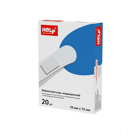 Лейкопластырь HELP бактериц. полимерный с с ионами серебра19 х 72 мм. 20 шт./уп.