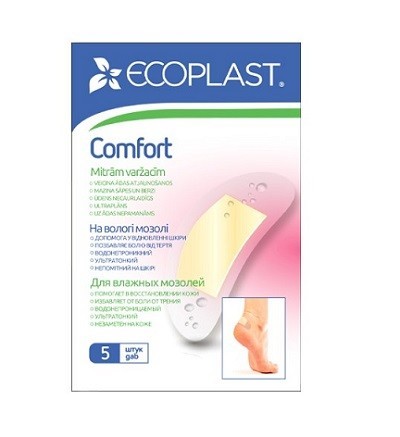 ECOPLAST пластырь противомозольный comfort 70х38мм n5 Гидроколлоидная подушечка создаёт специальную микросреду на поверхности повреждённой кожи, что способствует скорейшему заживлению. Надёжно покрывает повреждённый участок кожи и предотвращяет давление и трение.