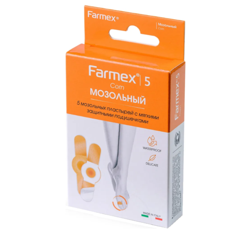 Мозольные эластичные пластыри Farmex на полимерной основе телесного цвета с мягкими подушечками из вискозы. Устраняют боль и дискомфорт при ходьбе, снижают давление обуви на болезненный участок стопы. Надежно фиксируются на коже при помощи гипоаллергенного клея. Устраняют боль и дискомфорт при ходьбе, снижают давление обуви на болезненный участок стопы.
