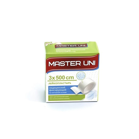 Лейкопластырь на нетканой основе MASTER UNI не требует использования ножниц. Достаточно отмерить нужную длину и оторвать пластырь руками. Изготовлен из микропористой целлюлозы, не оставляет следов на коже, не вызывает аллергической реакции.