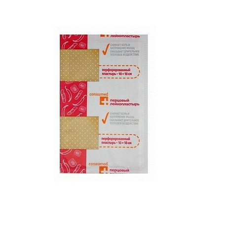 Лейкопластырь перцовый перфорированный 10 х18 см №1 Применяется в качестве местнораздражающего и отвлекающего средства при радикулитах, артралгии (болях в суставах), невралгиях, миозитах, люмбаго, простудных заболеваниях.