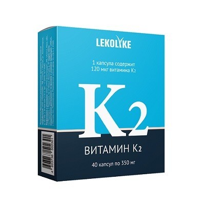 LEKOLIKE ВИТАМИН К2 КАПСУЛЫ - Мягкие желатиновые капсулы. Содержание биологически активных веществ в 1 капсуле: Витамин К2 - 120 мкг Описание ВИТАМИН К2 В настоящее время накоплено достаточно научных доказательств того, что витамин К2 должен входить в список крайне необходимых питательных веществ. Улучшение состояния кровеносных сосудов, укрепление костной ткани, защита от преждевременного старения организма - лишь небольшая часть того, на что способен «супервитамин». В рационе человека количество витамина К2 весьма ограничено. Кроме того, уровень витамина К2 значительно снижается с возрастом, при заболеваниях печени и кишечника, при приеме антибиотиков широкого спектра действия. Новый препарат «ВИТАМИН К2» от компании «ЛЕКОЛАЙК» создан для устранения дефицита важнейшего витамина в организме.