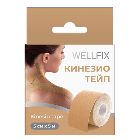 Представляет собой эластичную ленту из хлопчатобумажной ткани на гипоаллергенной основе. Устойчив к деформации и удобен для фиксации мышц при занятии спортом. Помогает при ушибах, вывихах, остеохондрозе. Кинезиотейп Wellfix – универсальный, его можно использовать на любой части тела.