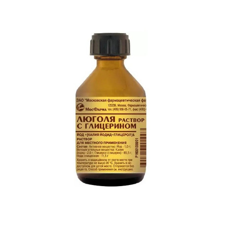 | Люголя раствор с глицерином | Р-р д/местн. прим. 1 г/100 г: фл. 25 г или 50 г рег. №: Р N001598/01 от 23.07.08 *- Бессрочно* |