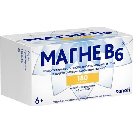 | Магне B6® | Таб., покр. оболочкой: 60, 100 или 180 шт. рег. №: П N013203/01 от 13.03.07 *- Бессрочно* Дата перерегистрации: 04.10.21 |