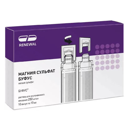 | Магния сульфат буфус | Р-р д/в/в введения 250 мг/1 мл: 5 мл или 10 мл амп. 10 шт. рег. №: ЛП-005272 от 21.12.18 *- Действующее* |