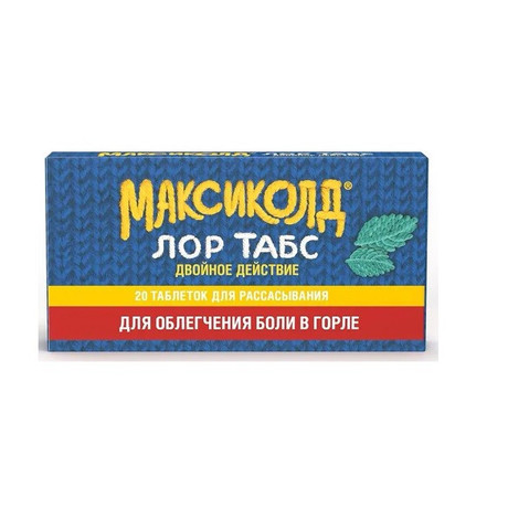 | Безрецептурный препарат | Максиколд® лор табс двойное действие | Таблетки для рассасывания 8.75 мг+1 мг: 6, 10, 12 или 20 шт. рег. №: ЛП-006474 от 24.09.20 *- Действующее* |