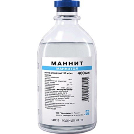 При в/в введении маннитола Vd соответствует объему экстрацеллюлярной жидкости. Маннитол может подвергаться незначительному метаболизму в печени с образованием гликогена. Выведение маннитола регулируется клубочковой фильтрацией без существенной канальцевой реабсорбции. T1/2 составляет около 100 мин. Выводится почками, при в/в введении в дозе 100 г 80% определяется в моче в течение 3 ч. При почечной недостаточности T1/2 может увеличиваться до 36 ч.