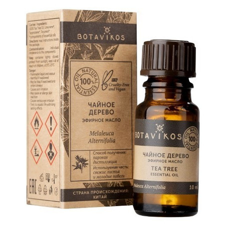 BOTAVIKOS МАСЛО ЭФИРНОЕ ЧАЙНОЕ ДЕРЕВО Внешний вид: жидкость светло-жёлтого до тёмно-жёлтого цвета, обладает холодным ярким тонизирующим ароматом