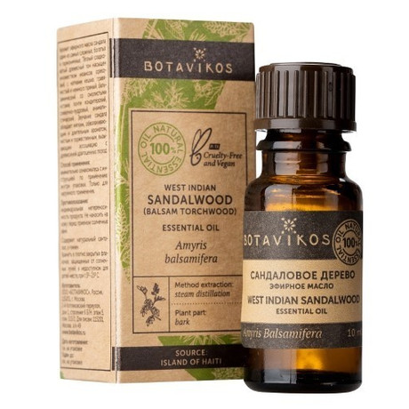 BOTAVIKOS МАСЛО ЭФИРНОЕ САНДАЛОВОЕ ДЕРЕВО Внешний вид: цвет от светло-желтого до темно-коричневого, аромат древесно-мховый .